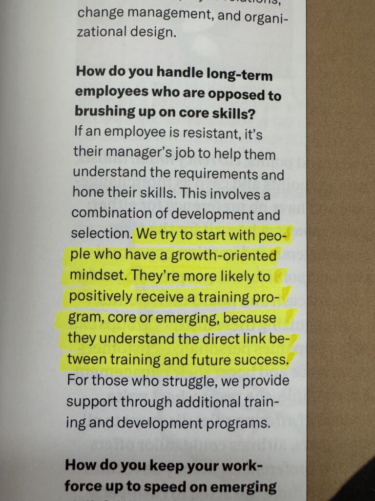 “We try to start with people who have a growth-oriented mindset… They understand the direct link between training and future success.”